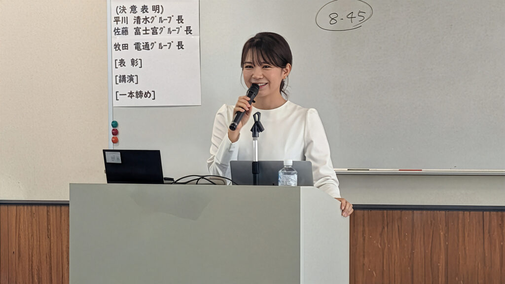 今年の新年会では、SBS静岡放送出身のフリーアナウンサー・内山絵里加さんを講師にお迎えしてハラスメント防止講習を実施しました。